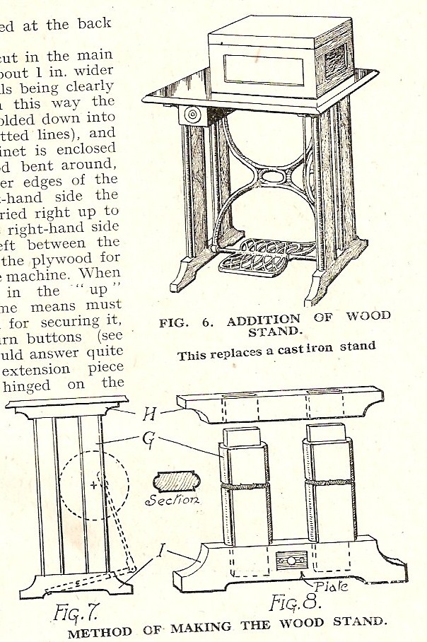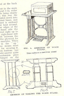 The illustrations are from the October 1942 issue of Woodworker magazine. I've seen pictures of treadles with wooden legs before and wondered why they hadn't got the standard iron legs. Now I know why - over-enthusiasm in the DIY department. Wooden legs were considered more modern and a way of increasing the value of the machine. I can't believe they could ever have been as stable or as long lasting as the original iron legs. Welcome to the latest follower, ok4now2000 - thank you for following!