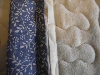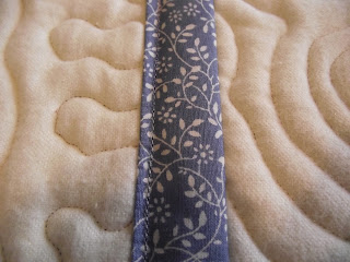 ... and on the back it holds down the binding just a fraction away from the folded edge. I love this method. It makes home quilting possible when you haven't got acres of space in the house. Linking up again with Leah Day's blog for Free Motion Friday - visit her blog so you can see what other bloggers are making!