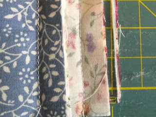 Leah describes the method really well, and when I first saw this video I knew I had found the method I wanted to use. There is just one snag - Leah recommends either a line of zigzagging or hand stitching for the last line of stitching. I had to adapt the method so all the stitching could be done on straight stitch machines. I also slightly changed the measurements. Here is the method I came up with:-