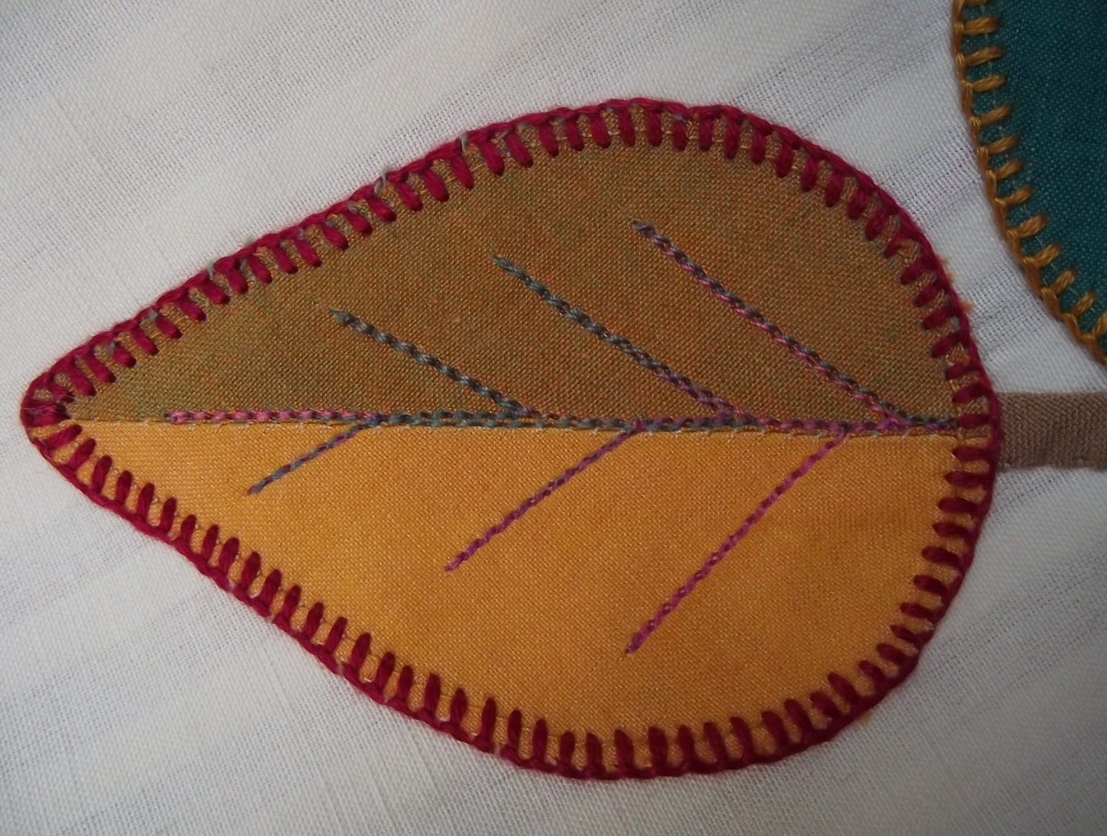 The first lot of stitching I did on this leaf had the bobbin thread showing in places, so I unpicked it and did it again once I had changed the shuttle. I am so glad I did.