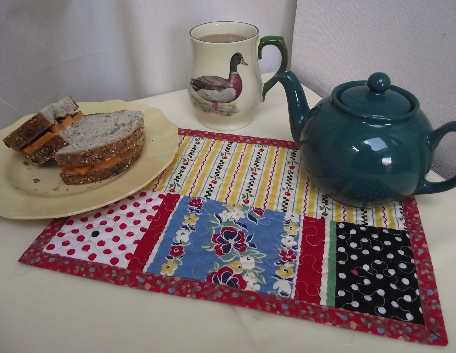 I was slightly cheesed off about it, because I realised that if I tried shaving a bit off the larger side I would probably end up in a right old pickle trying to get a snug fit. So this morning I changed plan and made it into a place mat and then had cheese and pickle sandwiches for lunch.
