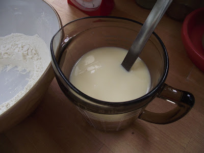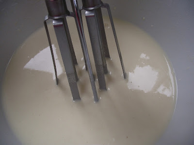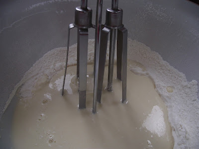 Add the rest of the milk and egg mixture gradually as the flour becomes incorporated into the batter.