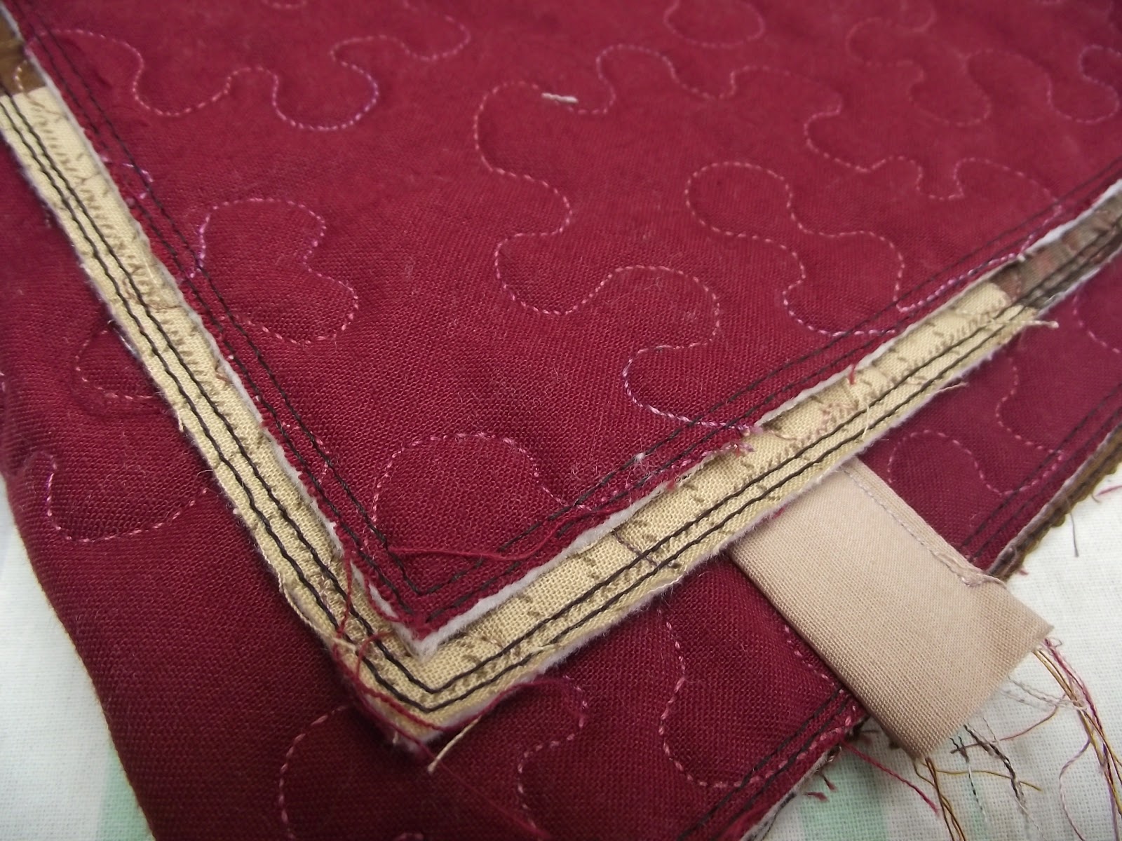 The material held so firm that I was able to quilt right up to the edges. Here is a photo taken before I had straightened off the edges.