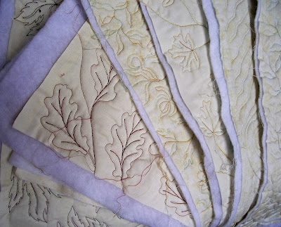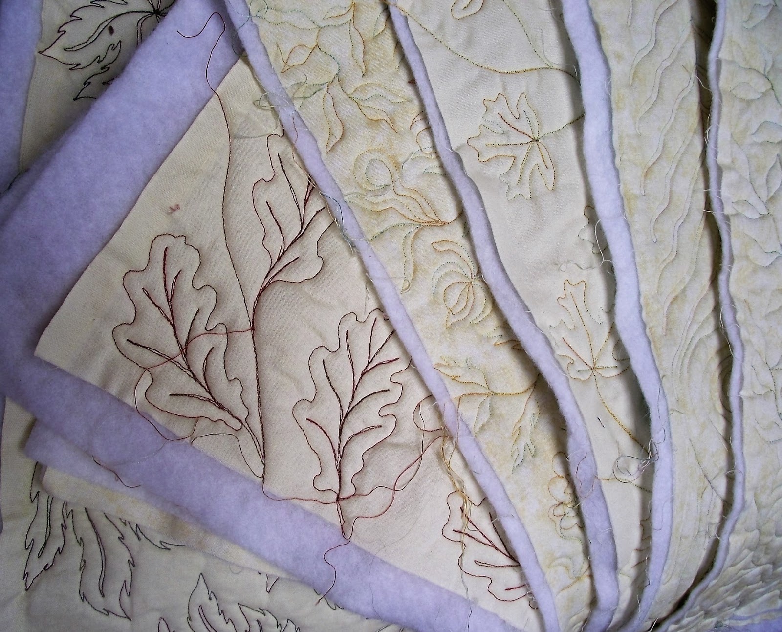 Still working on attaching the sample pieces, using my favourite Quilt As You Go method.  I am testing a slight change in the method, but need to attach a few more pieces before I can be sure it is consistently better.