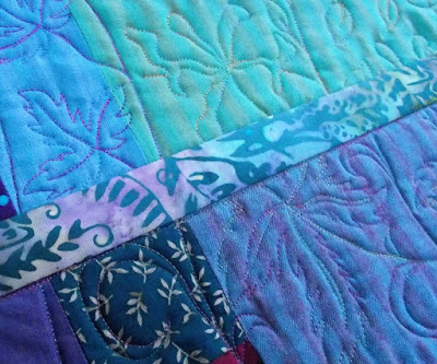 After having my son and daughter home from Ireland, and visiting my brother and his family in Surrey, life has been busy to say the least. Sewing has taken a back seat, and yesterday I finally did a bit of free motion quilting. The Secret Project is back on the anvil, so here is a tiny detail. There is a deadline, so I need to concentrate on this quilt for the next couple of months. Let's just hope I can steer clear of viruses, now that I am feeling rough for the second time within a month. I'm not moaning. Much.