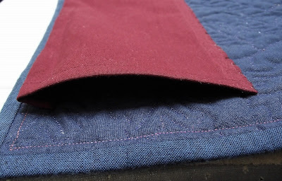 Fortunately I found a nice long strip with a selvedge, so the machine hemmed edge is tucked out of sight under the fold at the top edge.