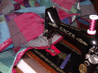 All the piecing and joining was done with my 1916 Singer 99K hand machine, and all the quilting with my 1945 Singer 15K treadle.