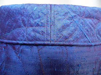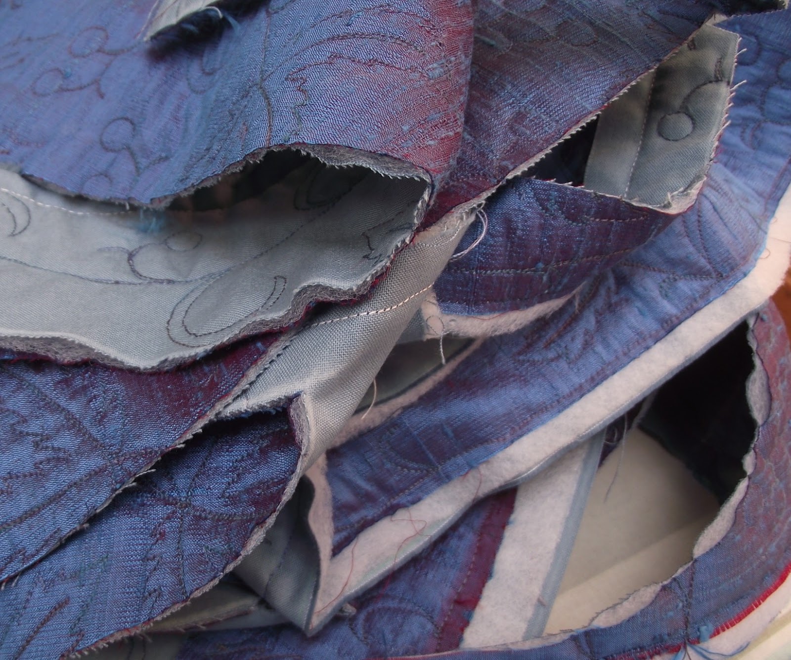 To make life difficult for myself, I started experimenting with silk, with a view to making a quilted jacket. To test how quilted silk would behave when making seams and buttonholes, I made a cushion. Because the wadding is so thin, it was easier to work with than I anticipated.