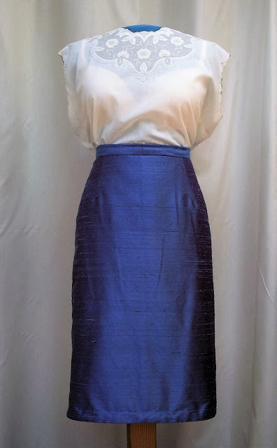 At last I have conquered my fear of zips, and am proud to show my first ever invisible (as opposed to visible) invisible zip. I am rather less proud of the creasing just below the waistband, but I have no idea whether that actually showed on the real me. I don't think anyone noticed or would have cared. The most important thing is that I made sure the waistband wasn't too tight on me and that I had plenty of room for my dinner.
