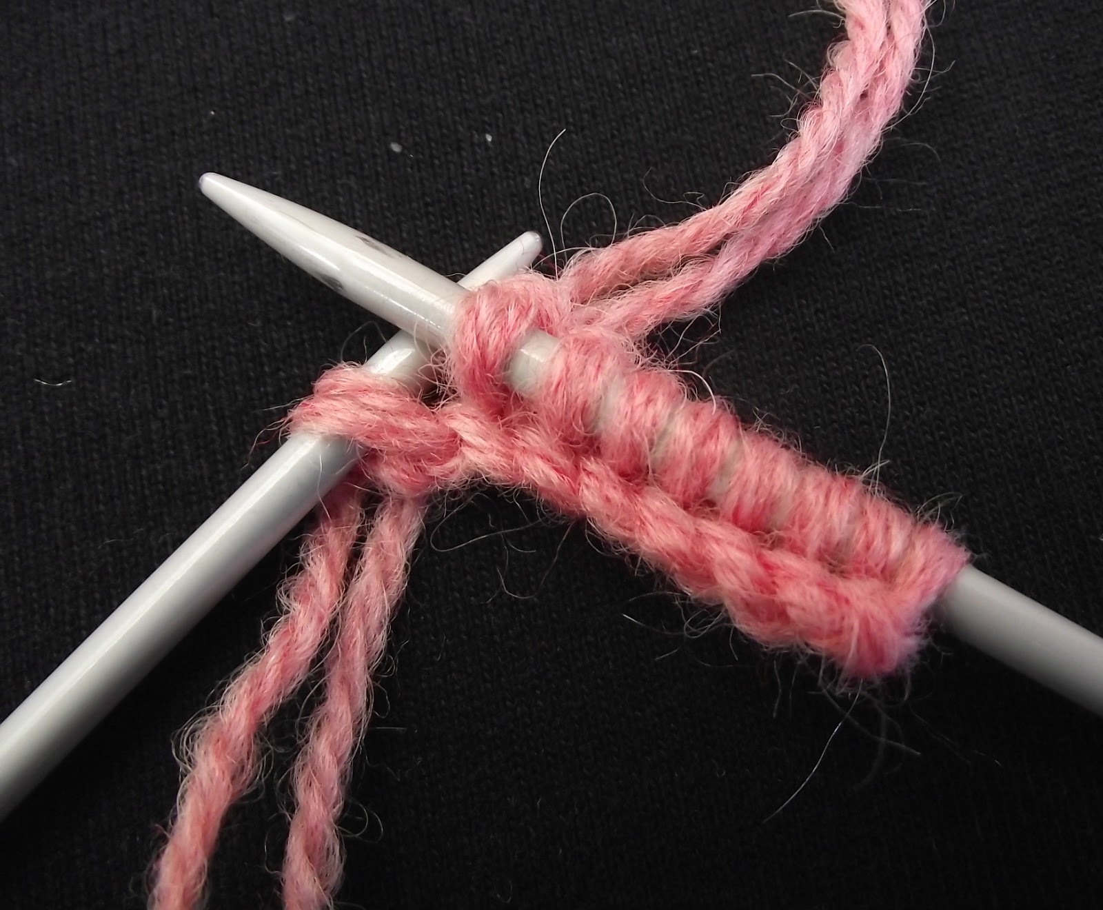 Turn, slip one, knit 5 stitches, and leave 3 on the left hand needle.