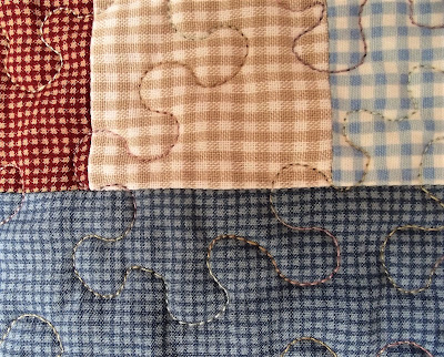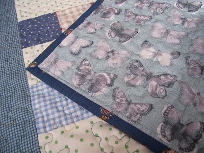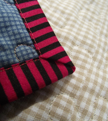 ...with more of the beige check for the backing.   Somehow this quilt has a no nonsense feel to it, as though any baby that sleeps beneath will turn out to be sensible, hard working and practical.  Wouldn't that be nice.