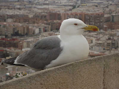 Very handsome and very irritating. Gulls make such a dreadful racket. This one was lording it on the walls of the castle above Alicante.