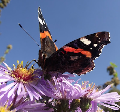 Not a cloud in the sky - the mist had cleared and the Michaelmas daisies were alive with butterflies and bees.