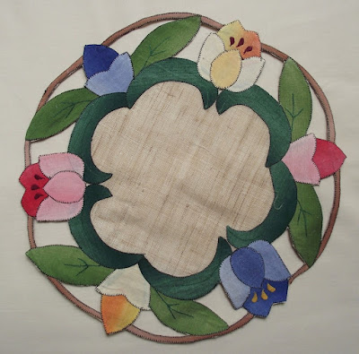 This is the latest item I have completed for the Doll Quilters Monthly swap - my partner Brittoni in New York State has just received it. The theme for May was to make a quilt any shape but square or rectangular. That had me flummoxed for a bit, until I decided to make a free motion quilted doily