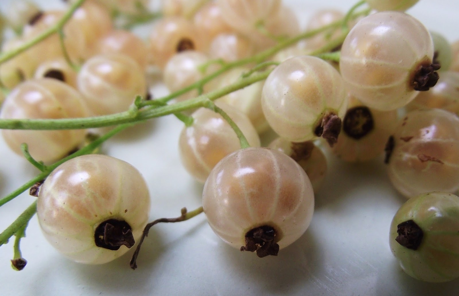 Last year it rained non-stop and I let the birds have the entire fruit crop on the allotment. This summer (we didn't have one last year) is a different story. At the moment it is scorching, with temperatures in the 80s, and I am getting in the fruit as it ripens. The whitecurrant bush is the first one that is ready.
