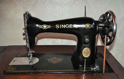 Before starting my latest project I thoroughly oiled my Singer 15K treadle, taking particular care to oil all the accessible points revealed when the rear inspection plate is moved. I also made sure that I oiled the felt oil reservoirs at the top of the needlebar and presser bar and the ones that are reached through the holes next to the spool pin. These two previous posts show my 15K hand machine, which has exactly the same innards. The mechanism was in a different position, which explains why the photos seem so different.